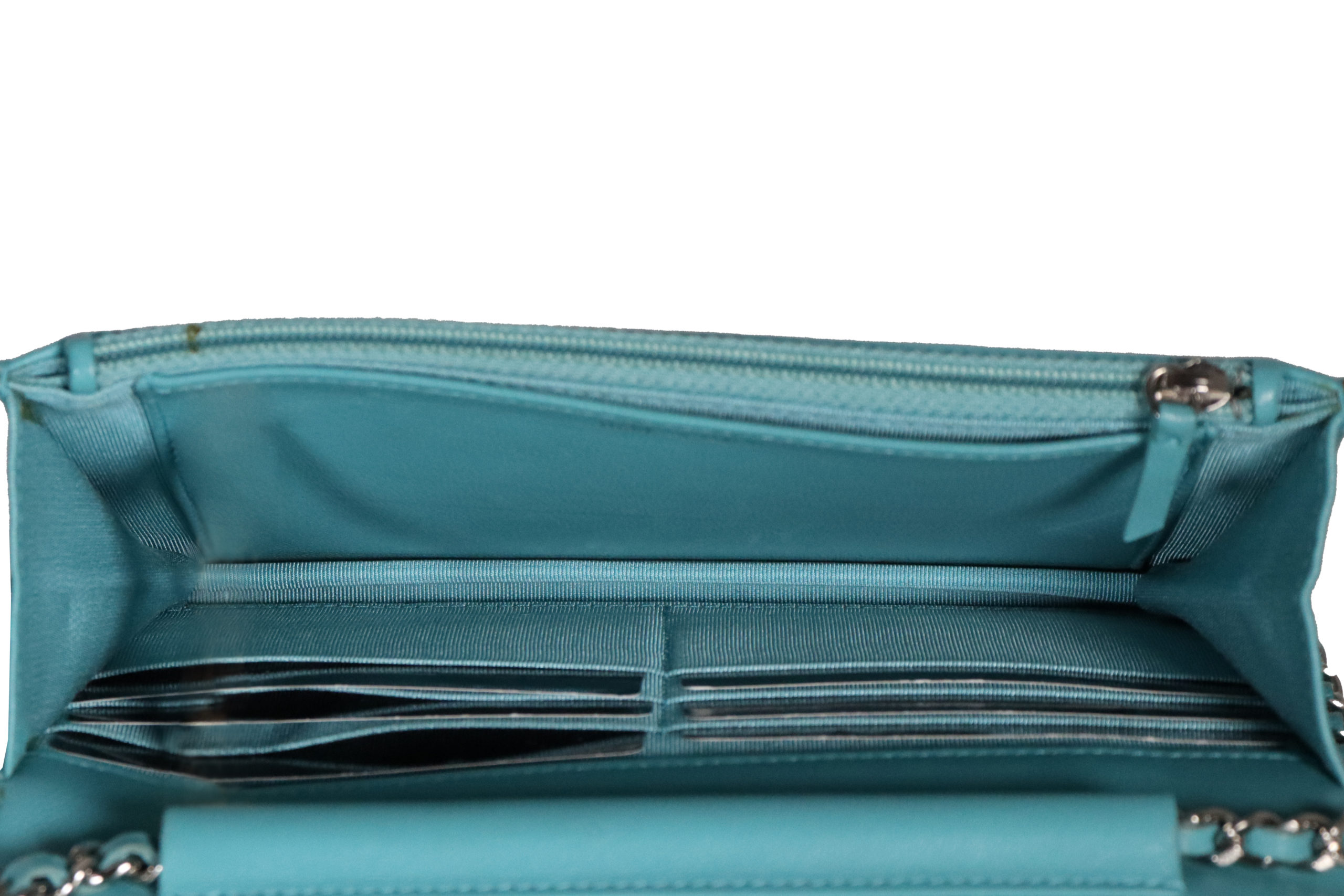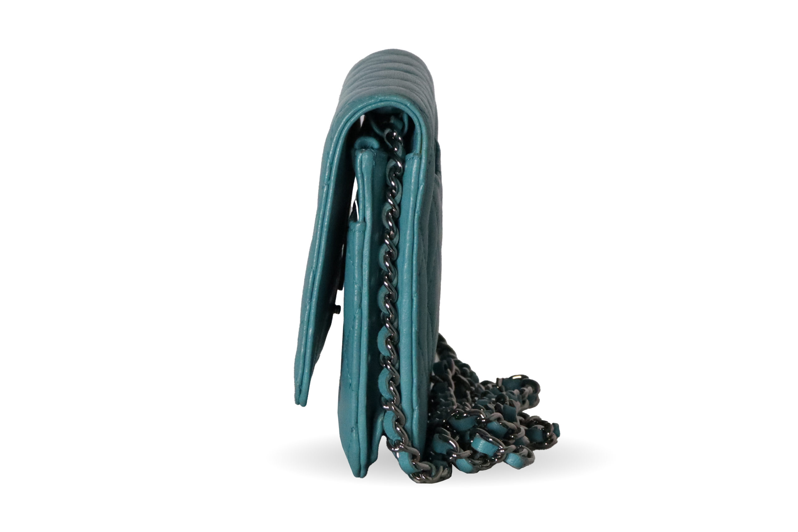 Diese wunderschöne Chanel Tasche in Türkis ist ein perfekter Begleiter für einen unvergesslichen Abend.