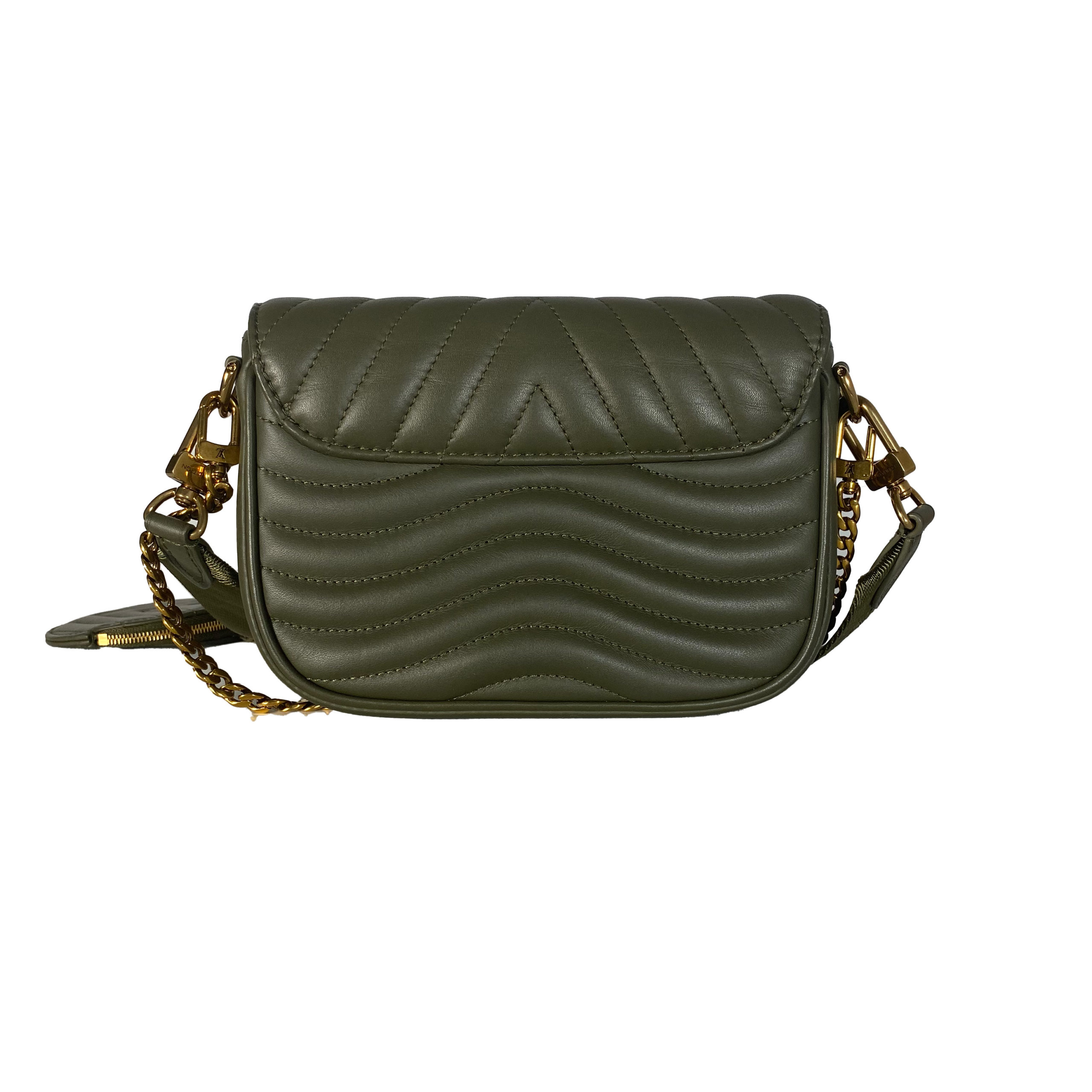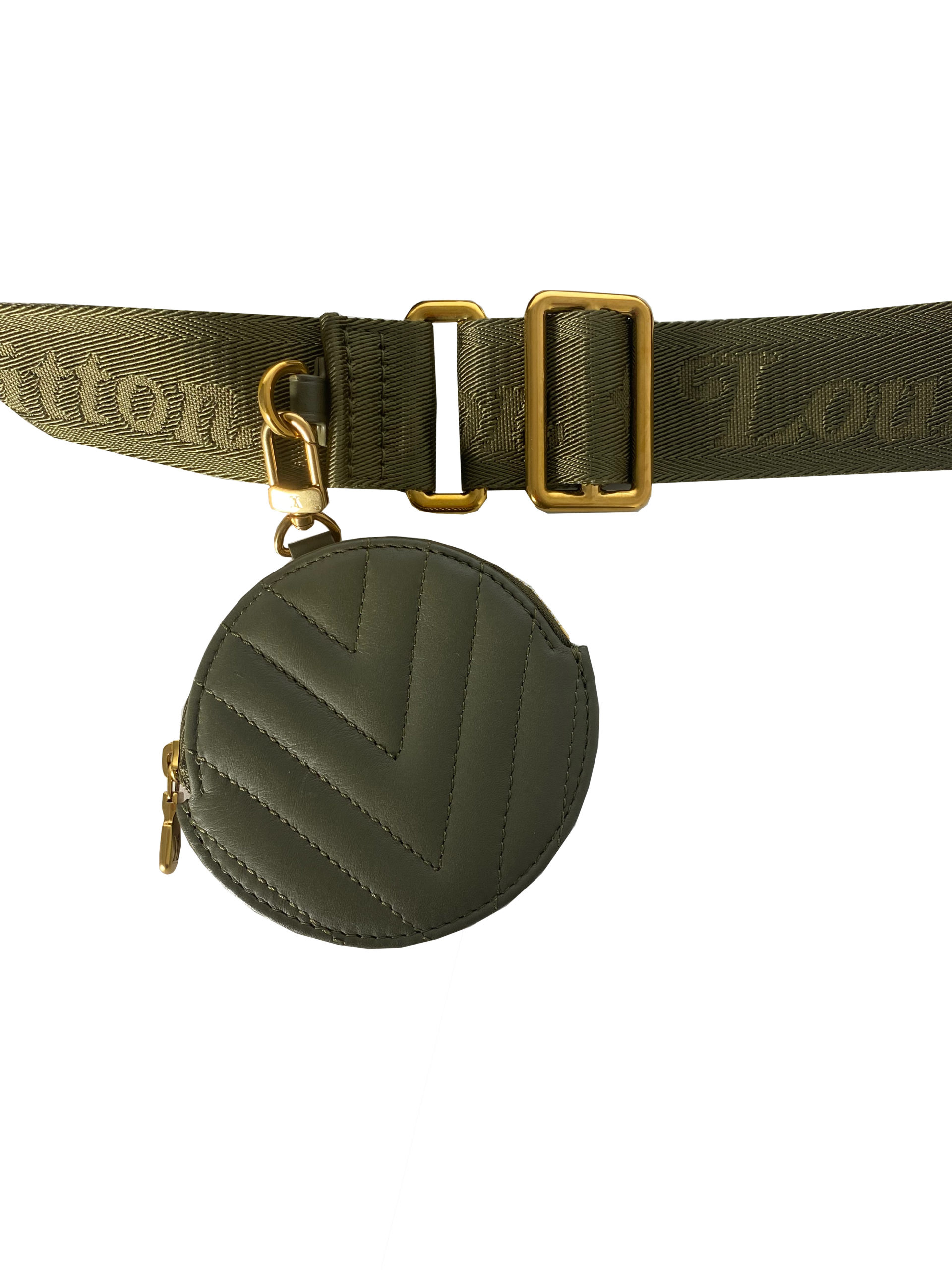 Diese wunderschöne Louis Vuitton Tasche ist eine echter Hingucker. Sie ist handlich, der perfekte Begleiter für den Alltag, als auch elegant zur Abendveranstaltung. Portemonnaie und Handy haben Platz als auch noch diverses andere. Zwei abnehmbare Riemen. Einer in Stoff mit Louis Vuitton Schriftzug und eine goldene Kette.