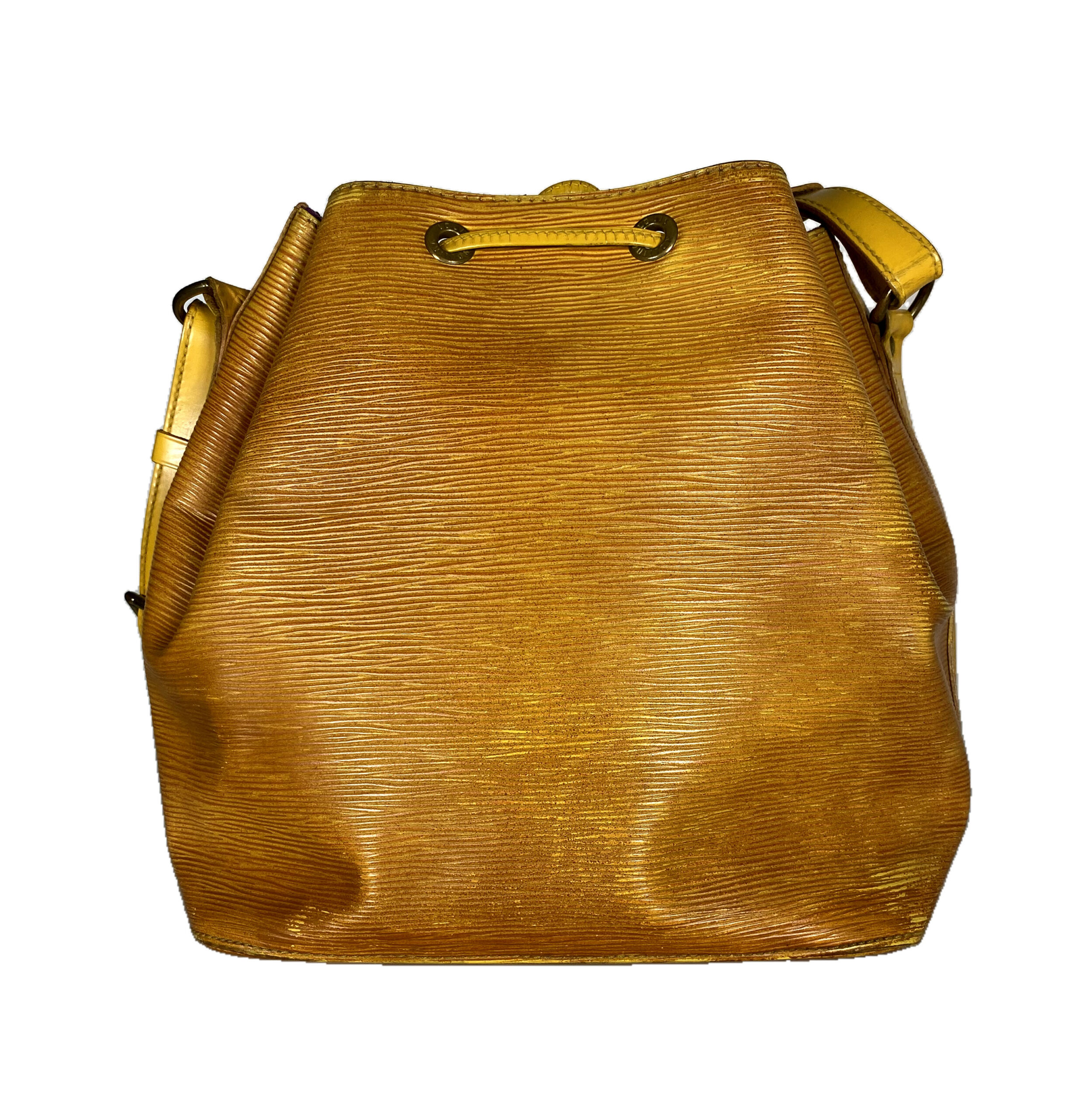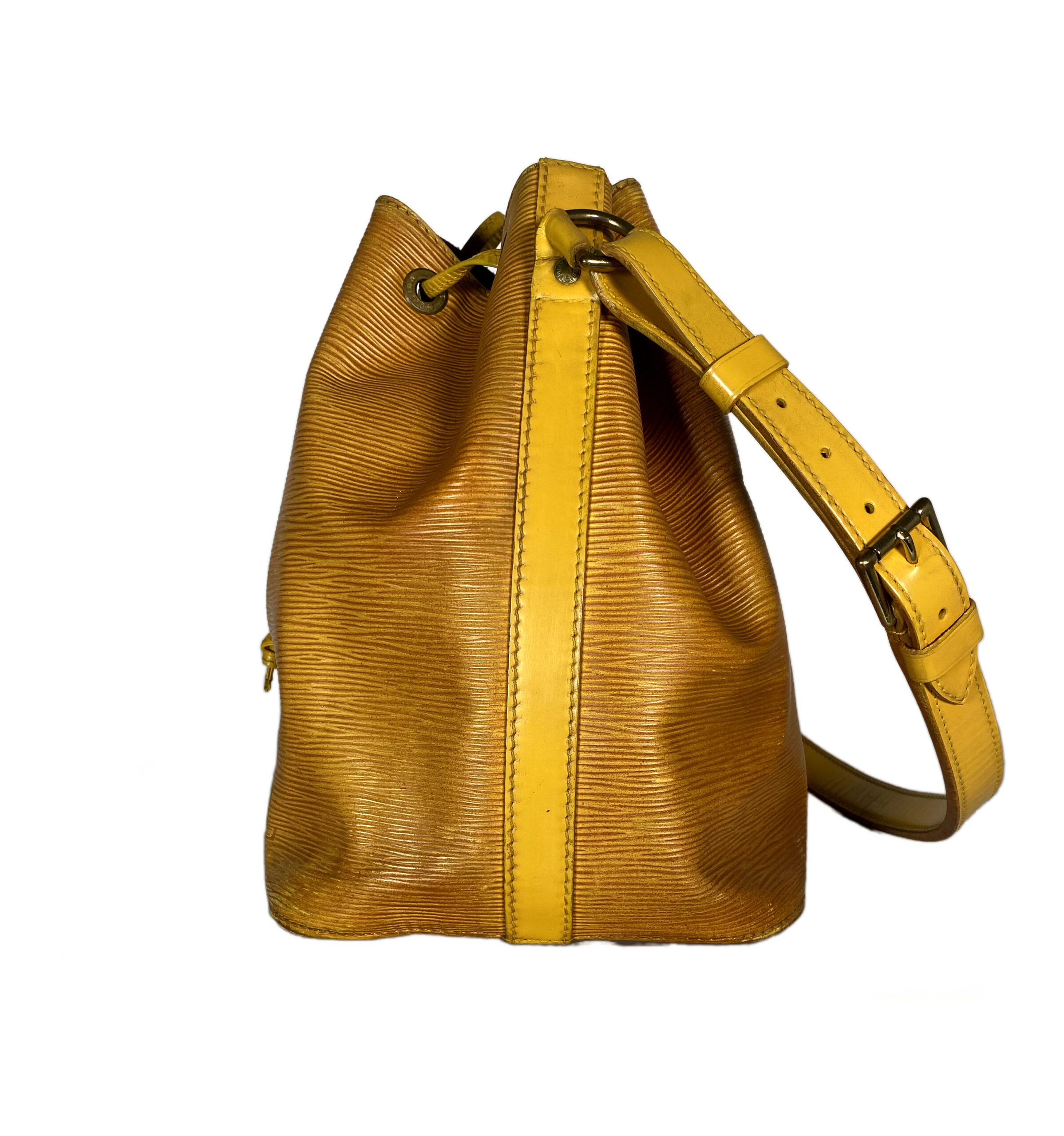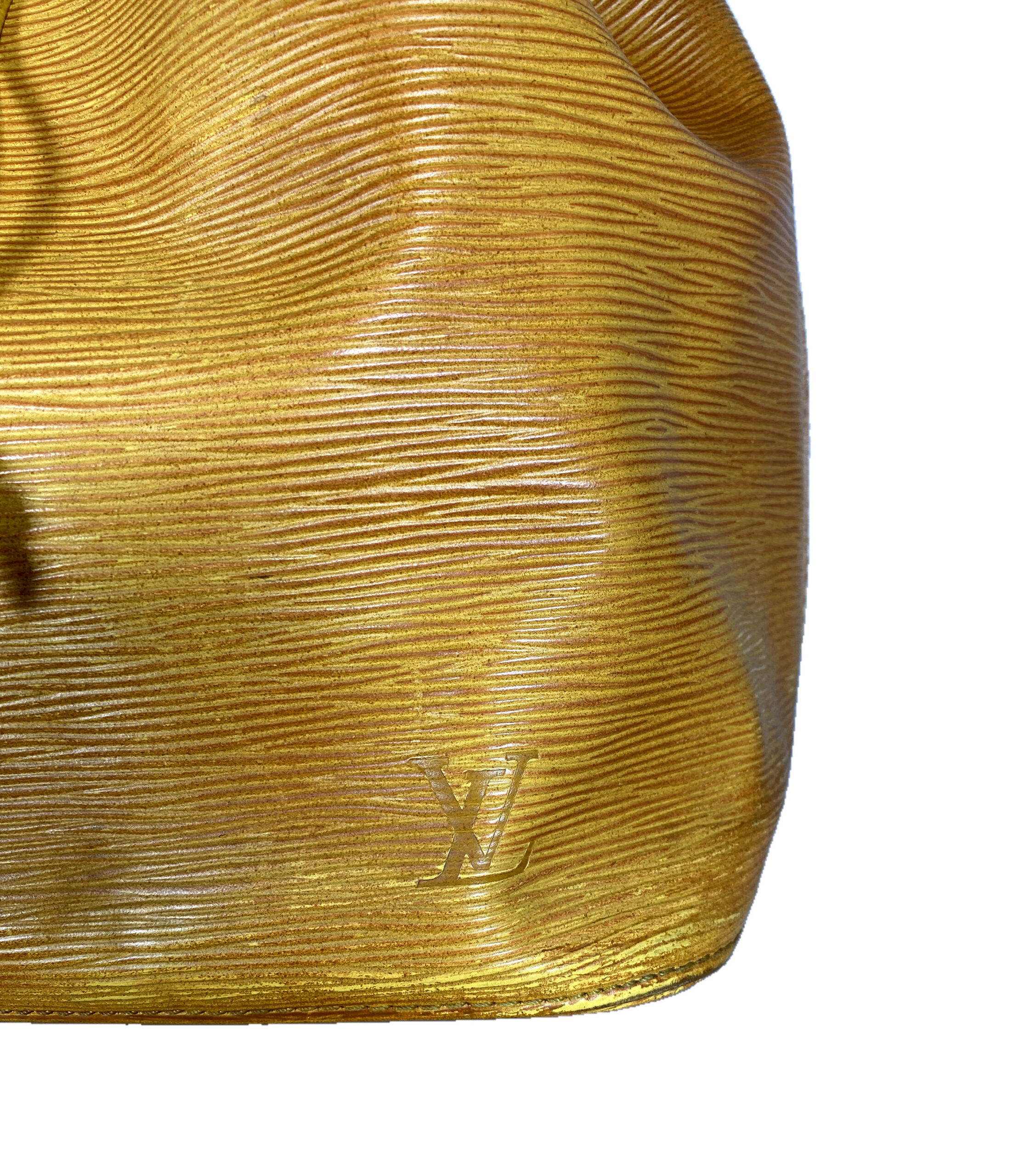 Stilvolle Louis Vuitton Noé Tasche aus hochwertigem Epi-Leder in einem auffälligen Gelbton. Die Tasche ist ein echter Klassiker und überzeugt durch ihr ikonisches Design sowie ihre robuste Verarbeitung.