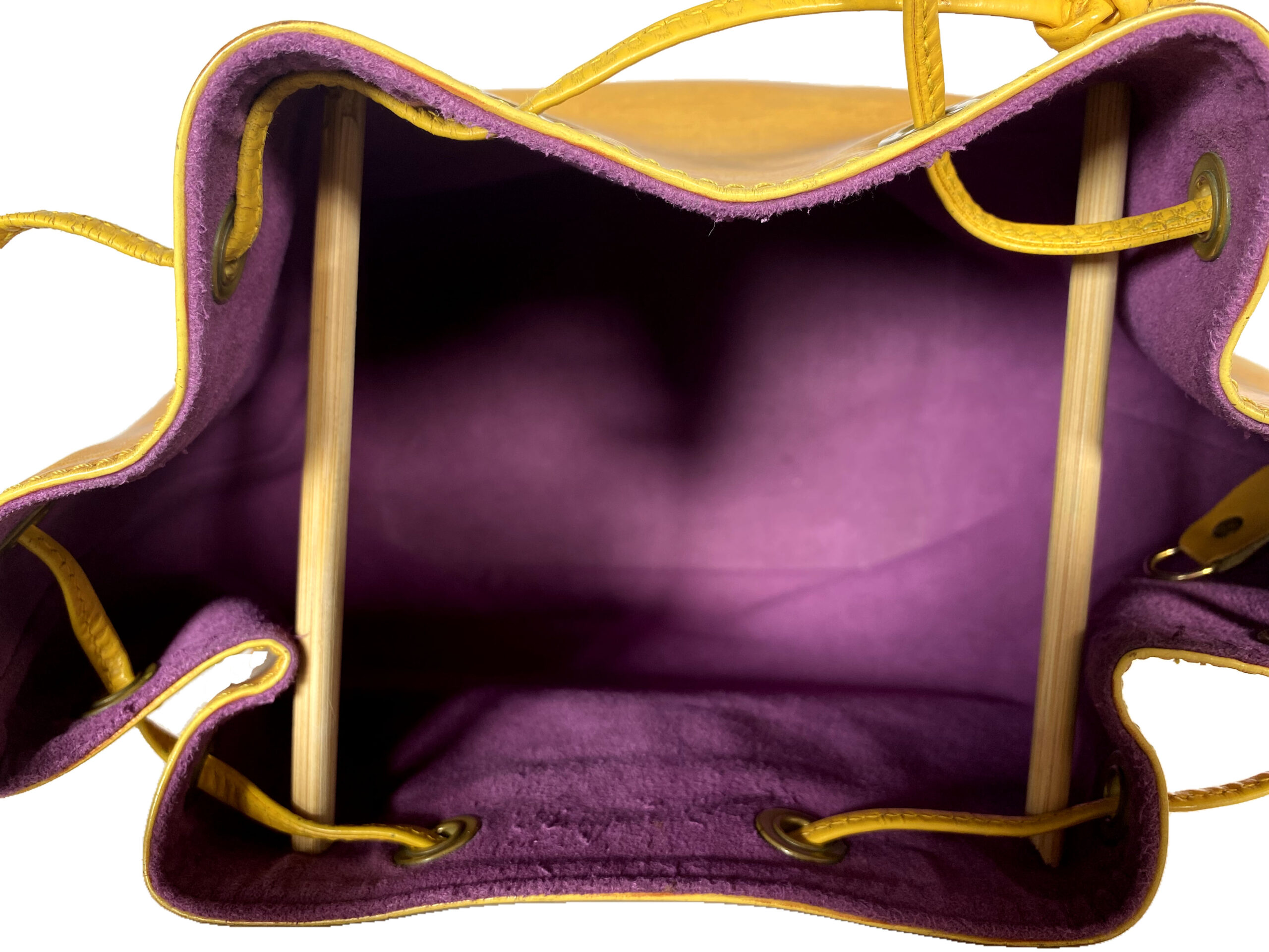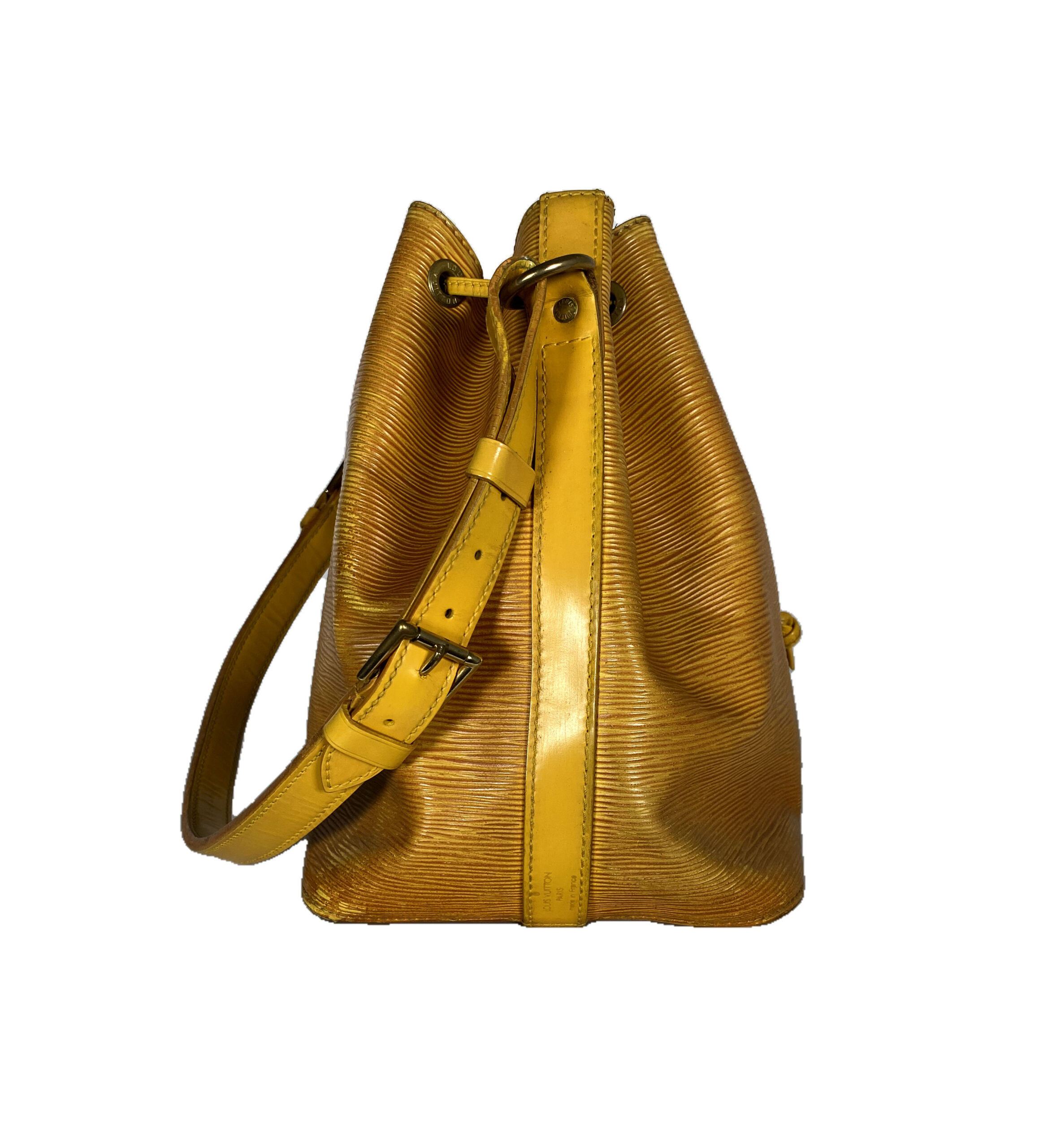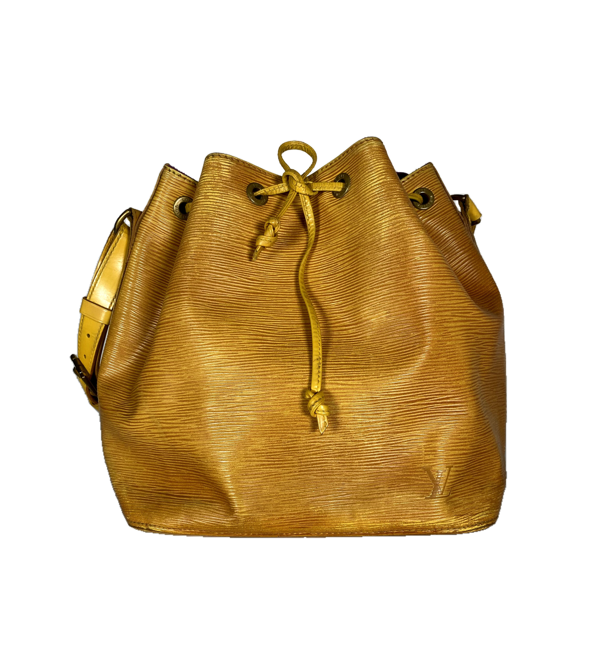 Stilvolle Louis Vuitton Noé Tasche aus hochwertigem Epi-Leder in einem auffälligen Gelbton. Die Tasche ist ein echter Klassiker und überzeugt durch ihr ikonisches Design sowie ihre robuste Verarbeitung.