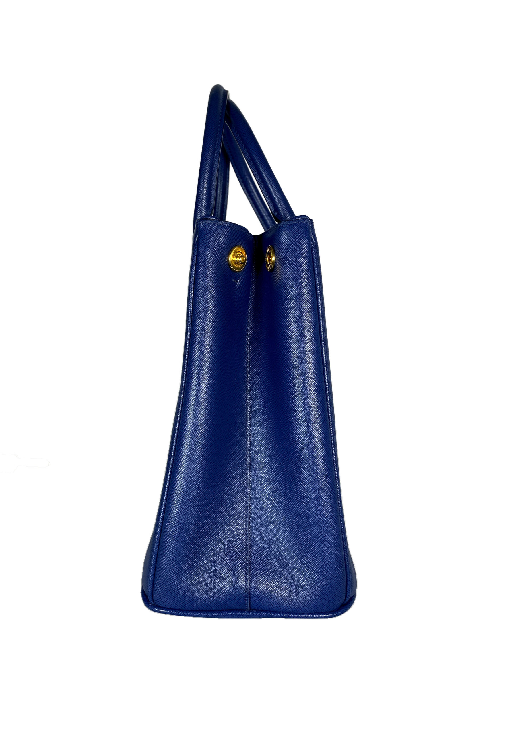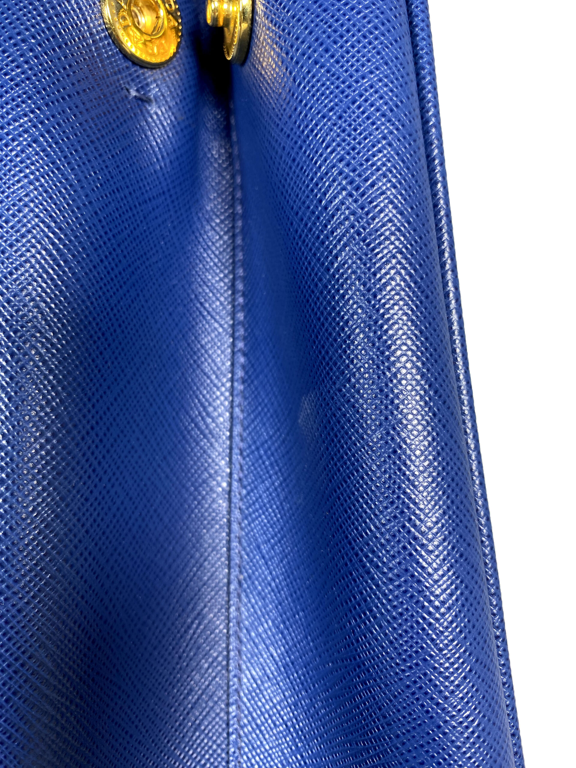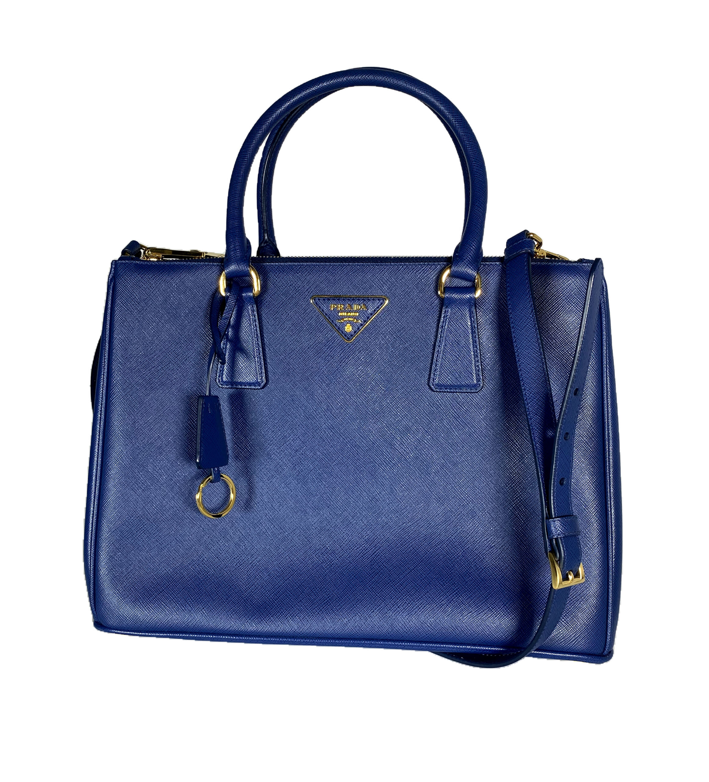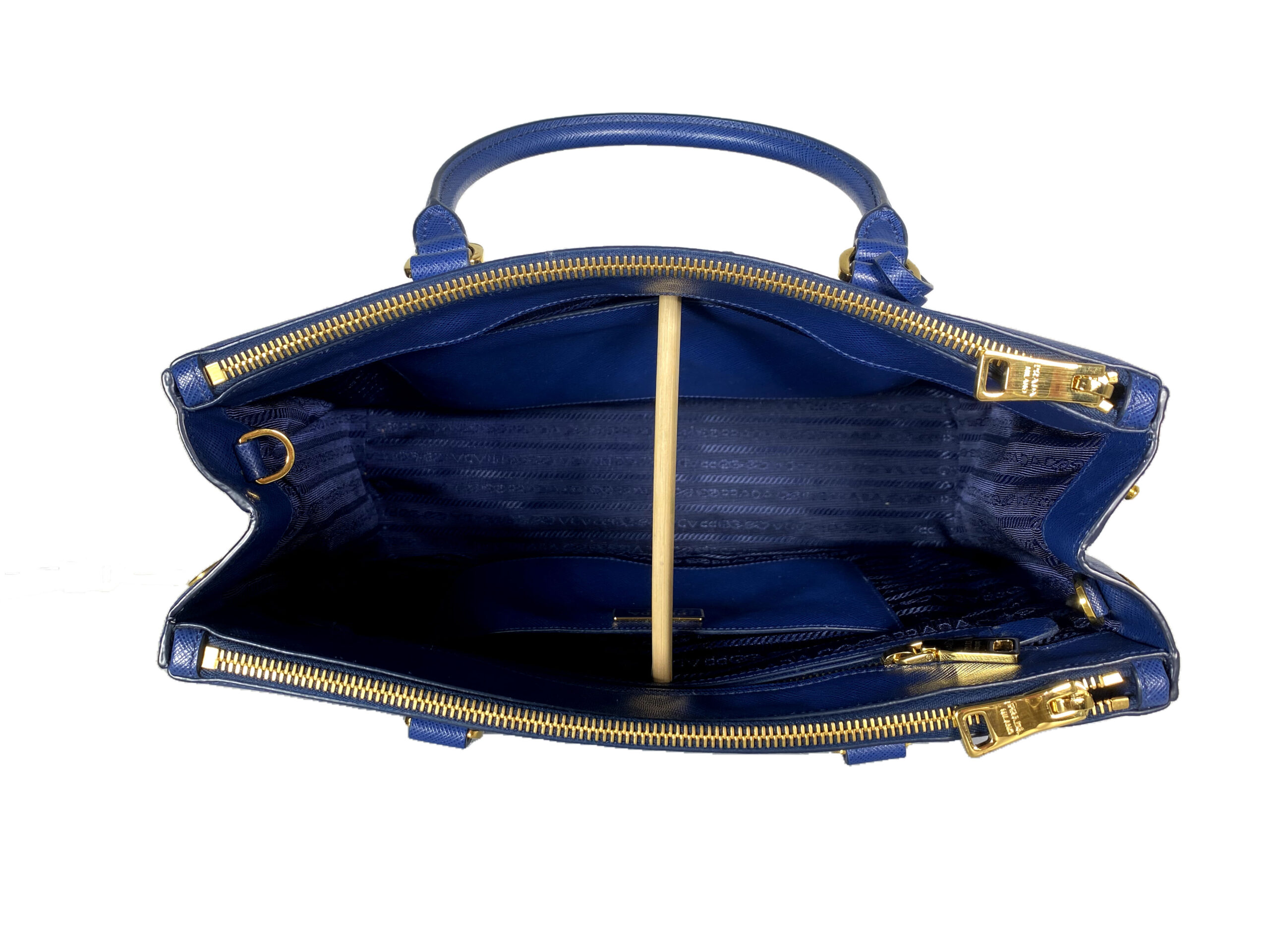 Elegante Prada Galleria Tasche in einem wunderschönen Blauton. Das zeitlose Design und das hochwertige Saffiano-Leder machen diese Tasche zu einem perfekten Begleiter für Alltag und Business.